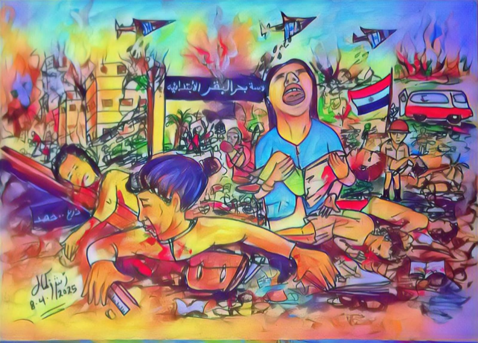 وصف اللوحة الفنية لمجزرة مدرسة بحر البقر الإبتدائية