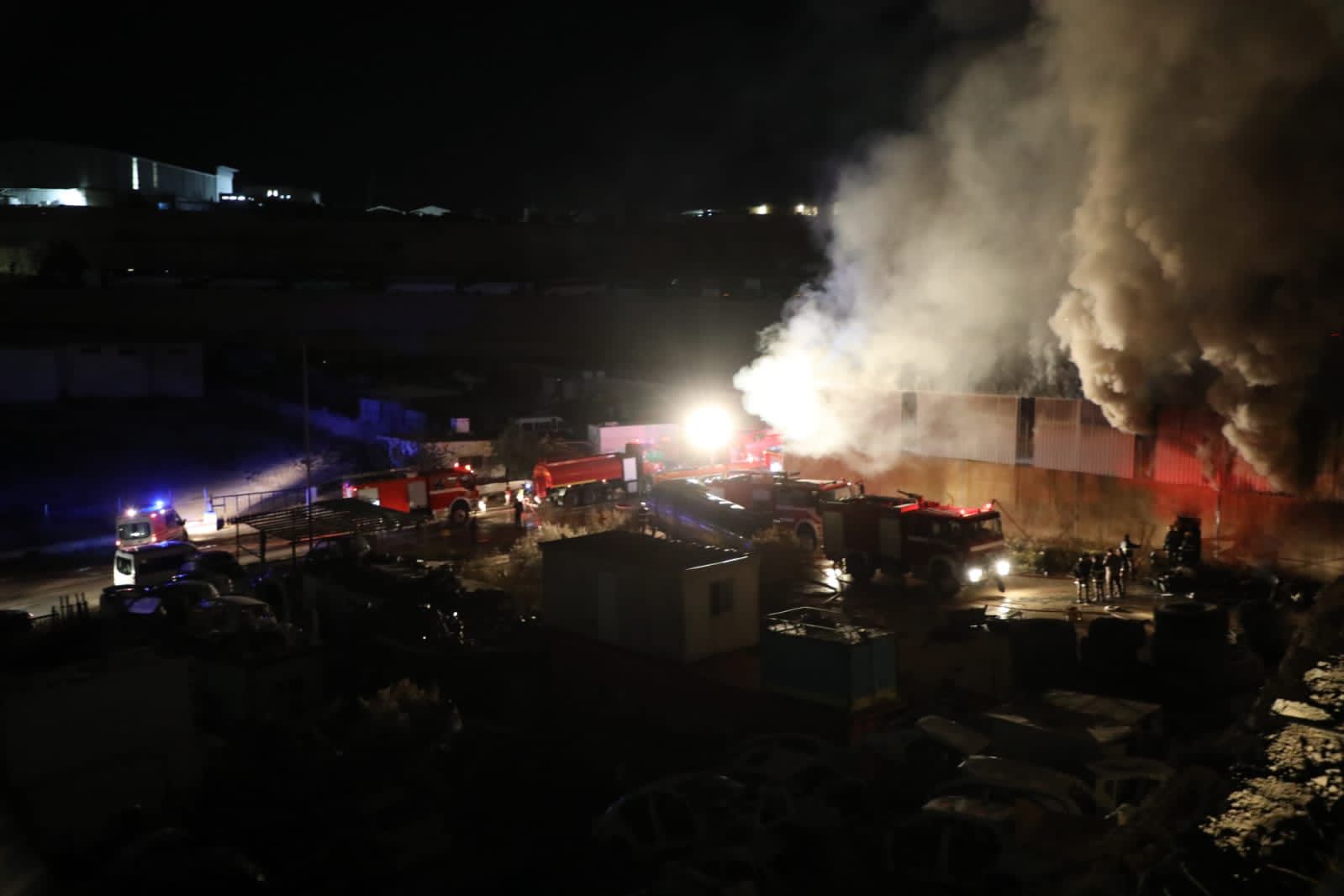 الدفاع المدني يخمد حريق هنجر في المنطقة الحره