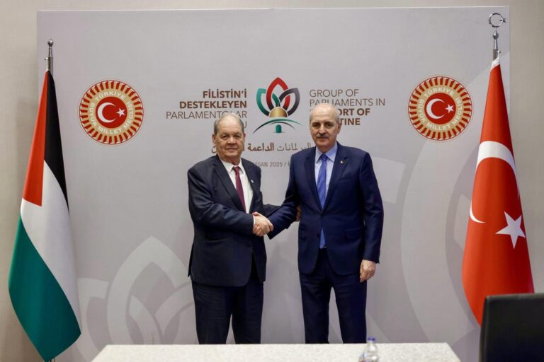 وبدوره قال رئيس مجلس الأمة الكبير الدكتور نعمان كورتلموش أن تركية تعمل بشكل متواصل مع كافة دول العالم وبرلماناته على وقف الحرب بشكل عاجل، والاستمرار بإدخال المساعدات وإقامة السلام الدائم في المنطقة واقامة دولة فلسطينية مستقلة بعاصمتها القدس الشرقية. وعملها الحثيث مع البرلمانات لحشد الرأي العام والمواقف الدولية لنصر الشعب الفلسطيني.