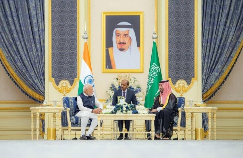جاء ذلك خلال جلسة مباحثات رسمية عقب استقبال ولي العهد السعودي، رئيس الوزراء الهندي، في الديوان الملكي بقصر السلام في جدة يوم الثلاثاء، حيث أجريت مراسم استقبال رسمية لمودي، واستعرض الجانبان أوجه العلاقات الثنائية بين البلدين، وسبل تعزيزها وتطويرها في مختلف المجالات، كما تبادلا وجهات النظر بشأن القضايا ذات الاهتمام المشترك.