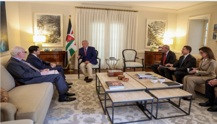 الملك يؤكد لدى اجتماعه بوزير الخارجية الأميركي ضرورة وقف إطلاق النار بغزة