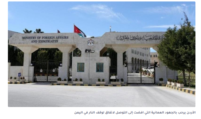 الأردن يرحب بالجهود العمانية التي افضت إلى التوصل لاتفاق لوقف النار في اليمن