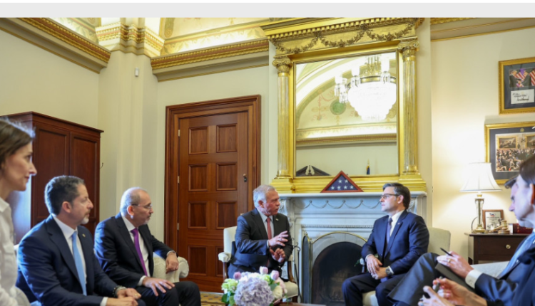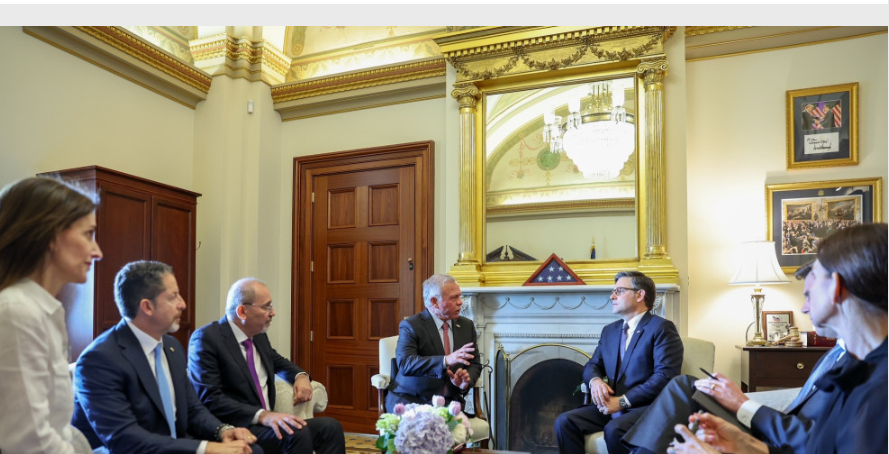 شبكة الشرق الأوسط نيوز : عقد جلالة الملك عبدالله الثاني في واشنطن، امس الثلاثاء، لقاءات منفصلة مع رئيس مجلس النواب الأميركي مايك جونسون، وعدد من لجان مجلسي الشيوخ والنواب، ورئيسة مجلس النواب السابقة نانسي بيلوسي.