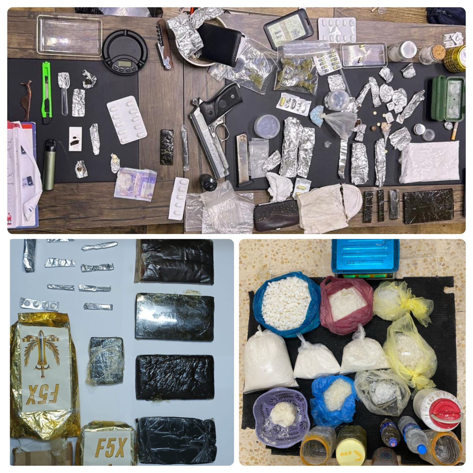 فيما تم في البادية الشمالية إلقاء القبض على شخصين استخدما مواقع التواصل الاجتماعي لبيع الحبوب المخدرة وضُبط بحوزتهما 7000 حبة مخدرة ، وفي محافظة العقبة وضعت كمائن خاصة لأحد تجّار المخدرات بعد ورود معلومات حول نيته نقل كمية كبيرة من المواد المخدرة من العقبة للعاصمة وجرى إيقافه وإلقاء القبض عليه وعُثر داخل مركبته على 12 ألف حبة مخدرة وكمية من مادة الكريستال والحبوب، والماريجوانا المخدرة .