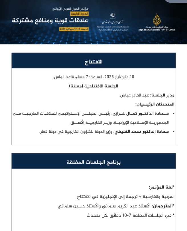 شبكة الشرق الأوسط نيوز – محيي الدين غنيم : غادرت اليوم الجمعة الدكتورة ” رلى الحروب ” متوجهة للعاصمة القطرية – الدوحة ،وبدعوة من مركز الجزيرة للدراسات للمشاركة في مؤتمر الحوار العربي الإيراني والذي يعقد في دورته الرابعة في الدوحة ( علاقات قوية ومنافع مشتركة ) والمزمع عقده 10-12 مايو /أيار 2025 ،