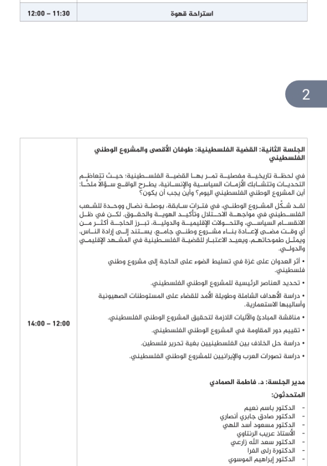 الجلسة الثانية : القضية الفلسطينية .. طوفان الأقصى والمشروع الوطني