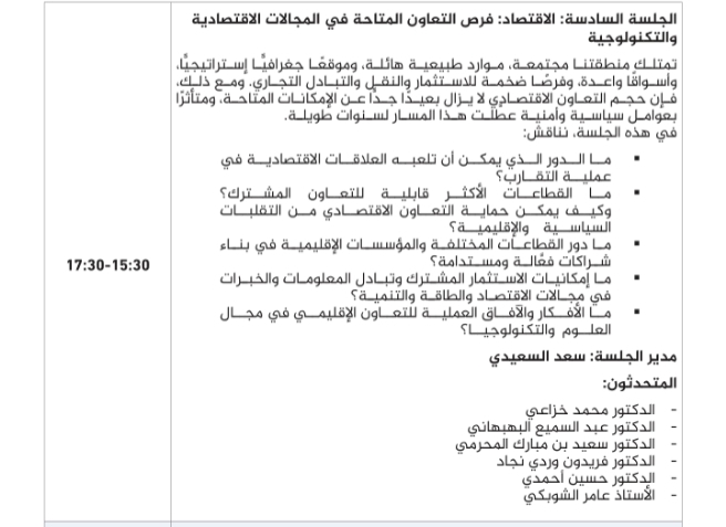 الجلسة السادسة : الاقتصاد .. فرص التعاون المتاحة في المجالات الإقتصادية والتكنولوجية