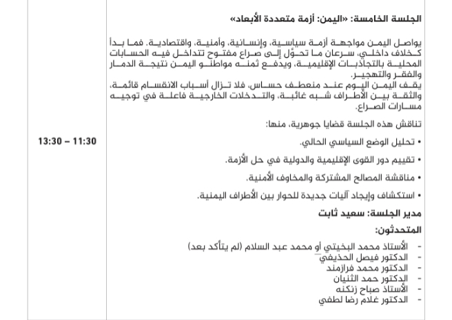الجلسة الخامسة : ( اليمن : أزمة متعددة الأبعاد)