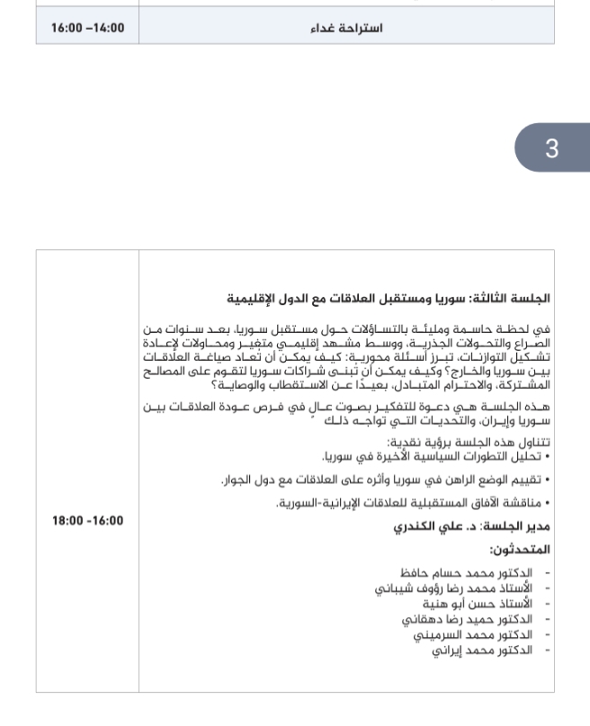 الجلسة الثالثة : سوريا ومستقبل العلاقات مع الدول الإقليمية