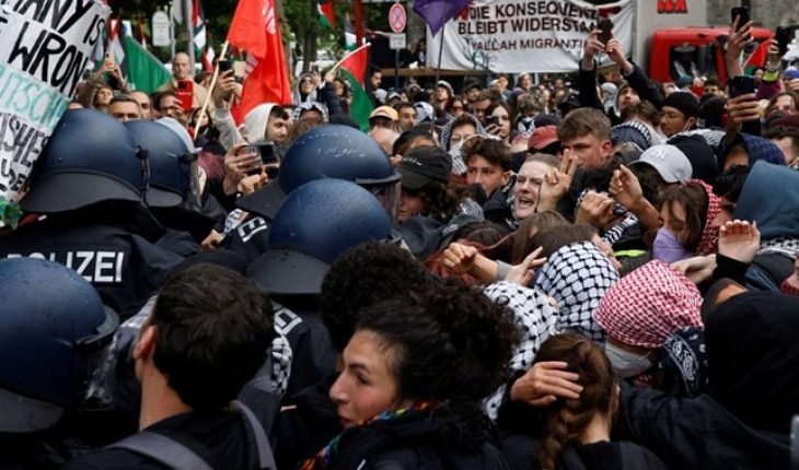 شبكة الشرق الأوسط نيوز : أُصيب عدد من الأشخاص في اشتباكات عنيفة بين متظاهرين وأفراد شرطة خلال مظاهرة مؤيدة للفلسطينيين في العاصمة الألمانية برلين لإحياء ذكرى النكبة.