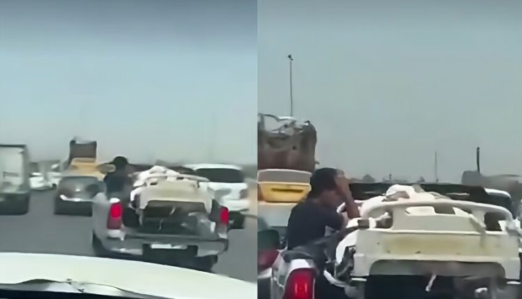 شبكة الشرق الأوسط نيوز : تداول نشطاء على مواقع التواصل الاجتماعي مقطع فيديو يوثق لحظة نقل مريض في سيارة “ونيت هايلوكس” مفتوحة الخلفية في إحدى الطرق الرئيسية بمحافظة البصرة جنوبي العراق.