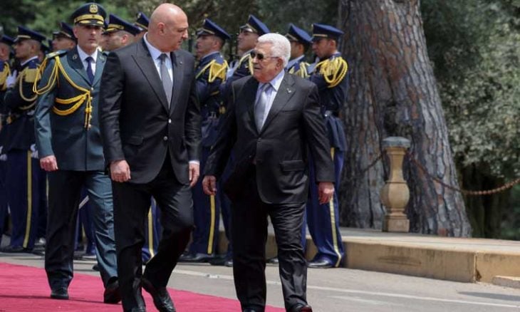 وجاء هذا الموقف إثر محادثات بين الرئيس اللبناني ونظيره الفلسطيني في قصر بعبدا تناولت العلاقات الثنائية وآخر التطورات الاقليمية والدولية. وإثر هذه المحادثات صدر بيان مشترك جاء فيه:
