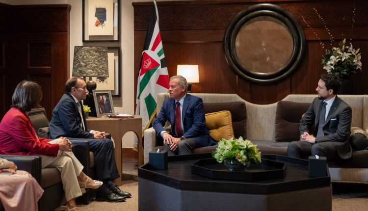 وبحث اللقاء، بحضور سمو الأمير الحسين بن عبدﷲ الثاني ولي العهد، سبل تعزيز علاقات الصداقة بين البلدين، وتوسيع التعاون في مختلف المجالات.