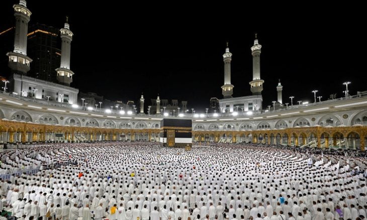 ويتوجّه الحجاج في “يوم التروية” وهم يرتدون ملابس الإحرام البيضاء، إلى مكة لأداء طواف القدوم الذي يتضمن الدوران سبع مرات حول الكعبة في باحة المسجد الحرام.