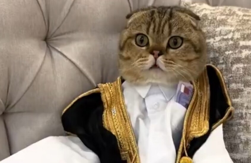 شبكة الشرق الأوسط نيوز : انتشر على منصات التواصل فيديو لقطّ بالزي السعودي الأصيل بالبشت والثوب، في مشهد لفت أنظار الآلاف.