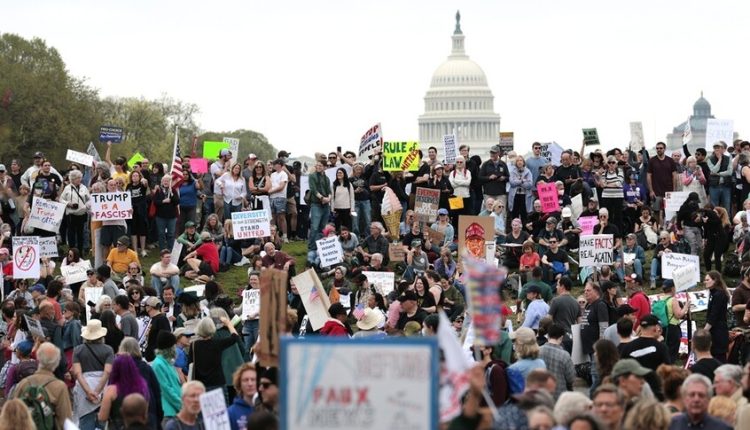 شارك عشرات الآلاف في مسيرة ضخمة جابت شوارع المدينة، رفعوا خلالها شعارات مناوئة للرئيس ترامب، من بينها “هكذا تبدو الديمقراطية” و”ترامب، ارحل”.