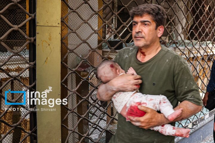 هجوم إسرائيل الوحشي على المدنيين في إيران..أب يحمل طفله الملطخ بدمه