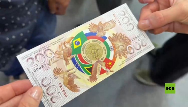 وتحتوي الورقة النقدية على أعلام الدول الخمس الأعضاء المؤسسين في مجموعة “بريكس” (البرازيل، روسيا، الهند، الصين، وجنوب إفريقيا)، وترمز إلى التعاون الاقتصادي بين دول المجموعة.