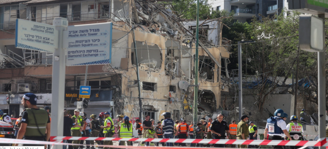 وقالت شرطة تل أبيب، إن صاروخا استهدف برجا وألحق أضرارا بمبان مجاورة في قلب تل أبيب.