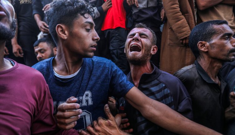 يُنعى الناس بينما يتم نقل الفلسطينيين المصابين إلى مستشفى ناصر لتلقي العلاج الطبي، عقب الهجوم الإسرائيلي على فلسطينيين كانوا ينتظرون الحصول على مساعدات إنسانية في خان يونس، جنوب غزة، في 17 يونيو 2025. / Gettyimages.ru