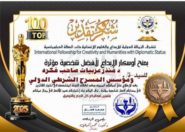 فإنَّ من أعظمِ ما يُخلّدُ في سجلِّ الخالدين، ويُسطَّرُ في كتابِ الزمنِ بمِدادِ الشرفِ والإبداع، أن ينهضَ المرءُ برسالةٍ ساميةٍ، ويضعَ لبِناتٍ أولى في ميدانٍ عجزتْ عنه العقولُ دهورًا، ثم يُتوَّجَ ذلكَ بجائزةٍ عالميّةٍ تُنصفُ جهده، وتُقرّ له بالتميّز. وهذا ما كان للمقدَّم المتقاعد منذر عربيات، الذي رفَعَ رايةَ الإبداعِ في ساحةٍ قلّ مرتادوها، فكان مؤسسًا وملهِمًا وبانيًا لمجدٍ ثقافيٍّ وأمنيٍّ فريد.