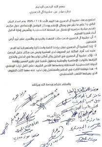 عشيرة الجعبري تعلن براءتها من مبادرة “إمارة الخليل”