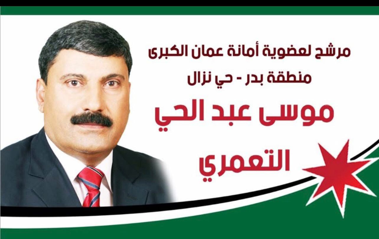 الأستاذ ” موسى عبدالحي التعمري ” يقرر خوض غمار الإنتخابات لعضوية أمانة عمان الكبرى المقبلة عن منطقة بدر / الياسمين