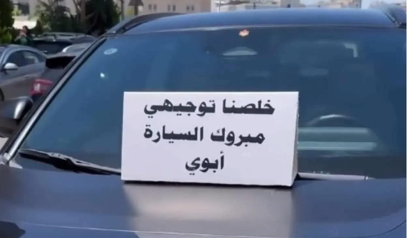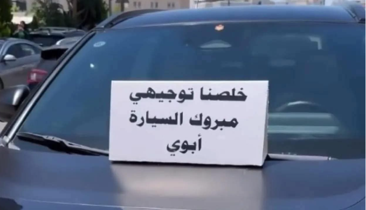 ووضع الوالد عبارة “خلصنا توجيهي.. مبارك السيارة أبوي”.