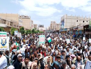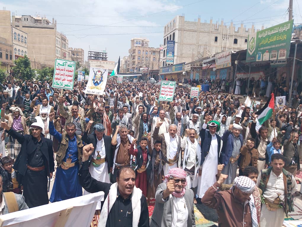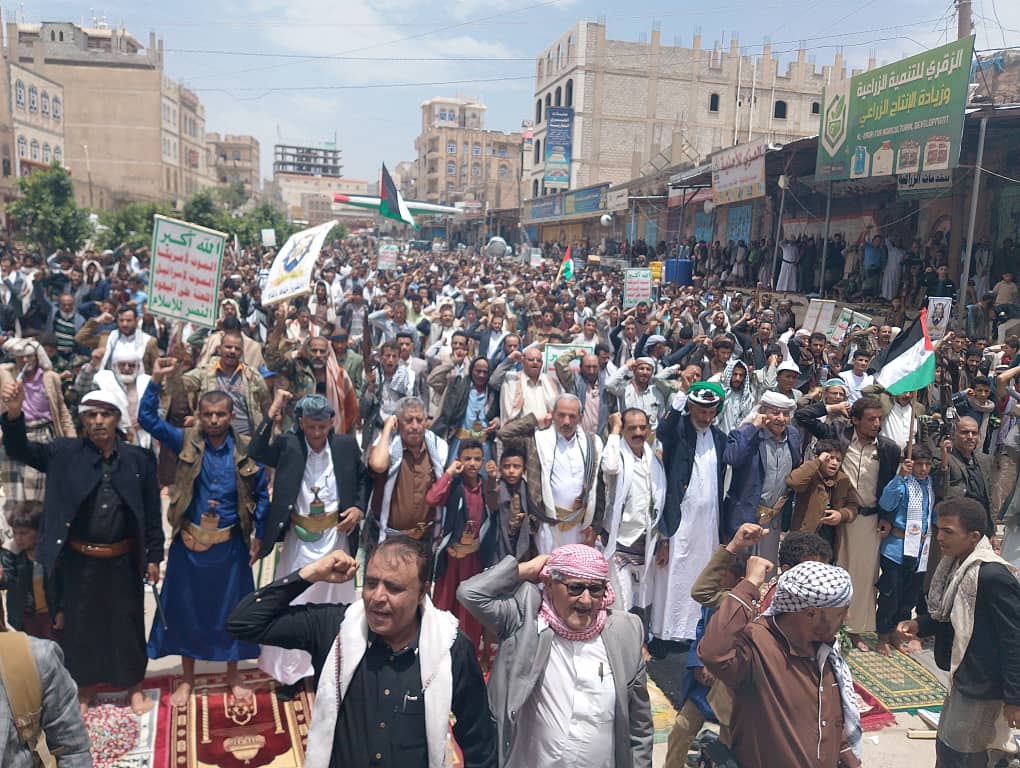 مسيرة جماهيرية حاشدة نصرةً ومساندة للشعب الفلسطيني المسلم المظلوم ومواجهةً الطغيان والإجرام اليهودي الصهيوني الأمريكي الذين يرتكب أبشع جريمة إبادة جماعية في غزة