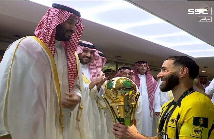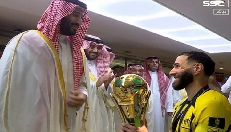 وحصل بنزيما على كأس البطولة، عقب مباراة فريقه ضد ضمك في ملعب “الإنماء”، حيث رفع قائد “العميد” الكأس عاليا ليلتفت إلى جنبات الملعب في إشارة للجماهير، قبل أن يذهب إلى باقي عناصر الفريق للاحتفال باللقب.