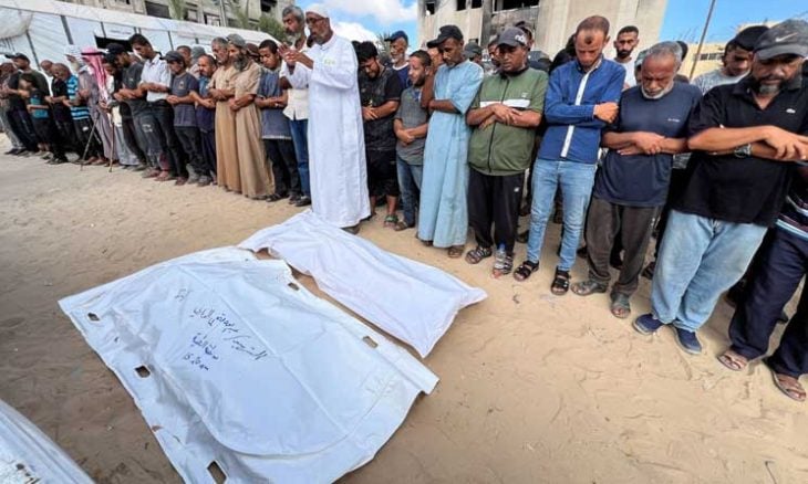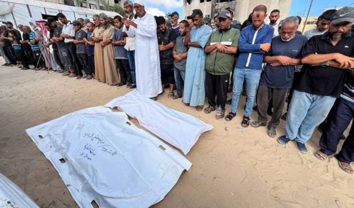 وفي مدينة خان يونس، استشهد فلسطينيان في قصف إسرائيلي استهدف خياما تؤوي نازحين غربي المدينة.