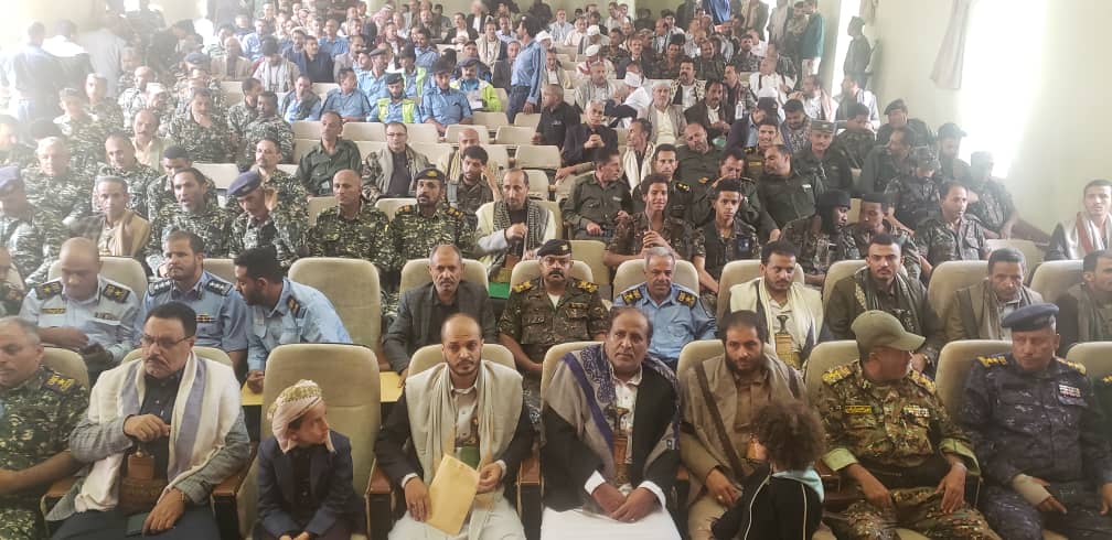 القاضي /يحيي القاسمي وكيل المحافظة رئيس هيئة رفع المظالم م/ابووكيل الوزارة مدير التربية بالمحافظة ا/ محمد درهم الغزالي مدير مكتب الثقافة ا. عبد الحكيم مقبل والعقيد امين وجيه الدين نائب مدير عام شرطة محافظة اب وقيادات أمنية ووعسكرية ومثقفين وشخصيات اجتماعية بالمحافظة