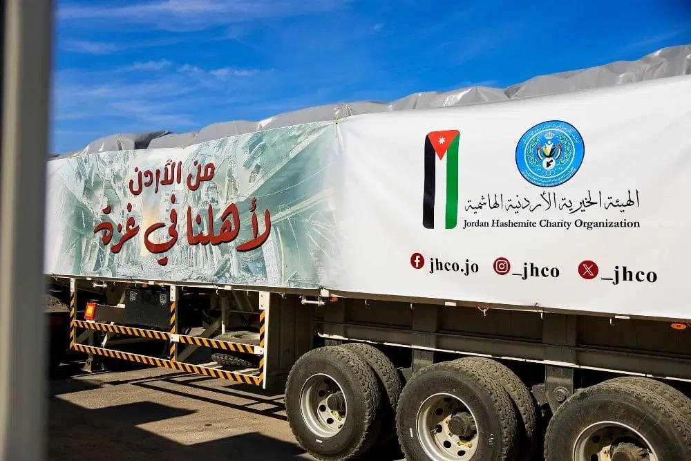 شبكة الشرق الأوسط نيوز : أرسلت الهيئة الخيرية الأردنية الهاشمية بالتعاون مع منظمات دولية إغاثية وبالتنسيق مع القوات المسلحة الأردنية- الجيش العربي 4 قوافل مساعدات برية إلى قطاع غزة.
