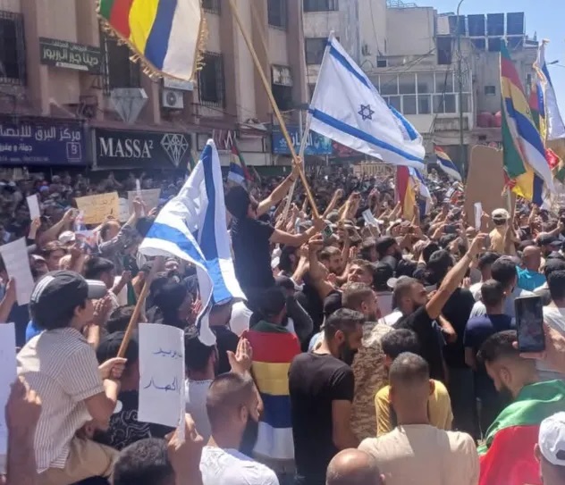 مظاهرة في السويداء ترفع أعلام الاحتلال الإسرائيلي وتطالب بالانفصال عن سوريا