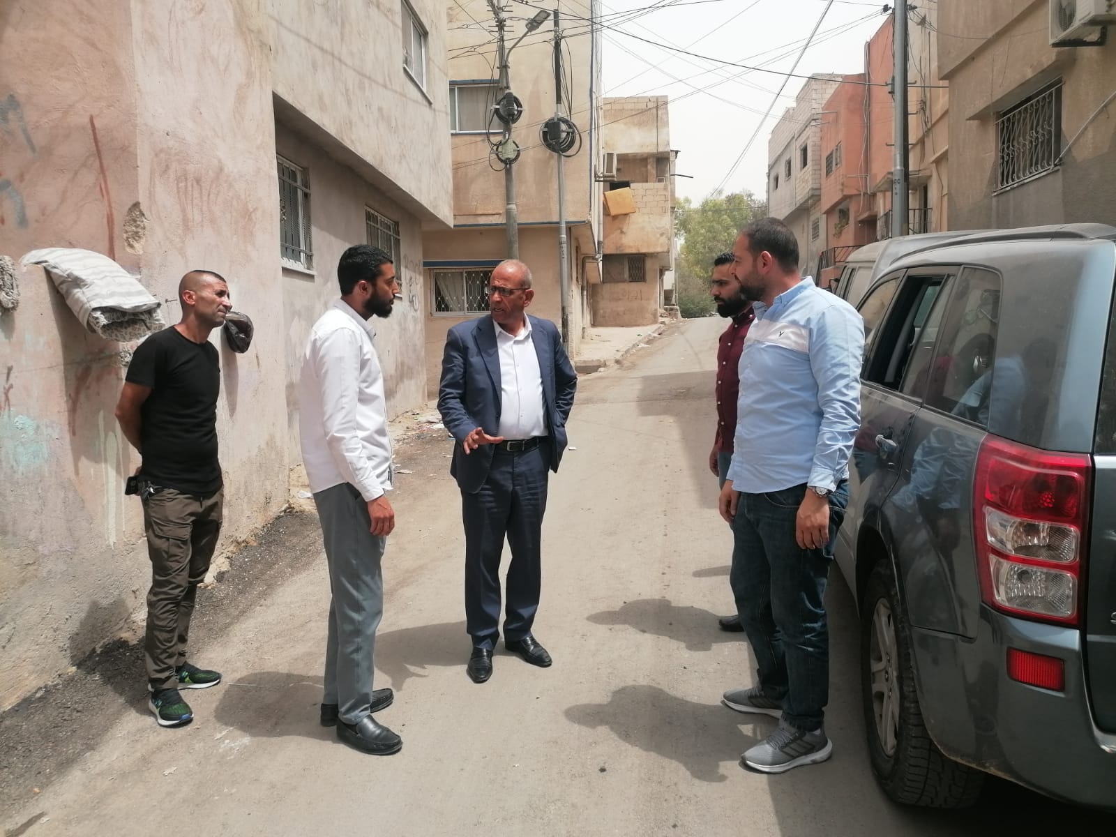 و اطلع على المدات الخرسانية والخلطات الاسفلتية ووحدات الانارة المنفذة في مخيم البقعة برفقة مدير الشؤون الفلسطينية المهندس محمد وشاح [الممول بمبلغ 200 الف دينار وهي قيد التنفيذ ]