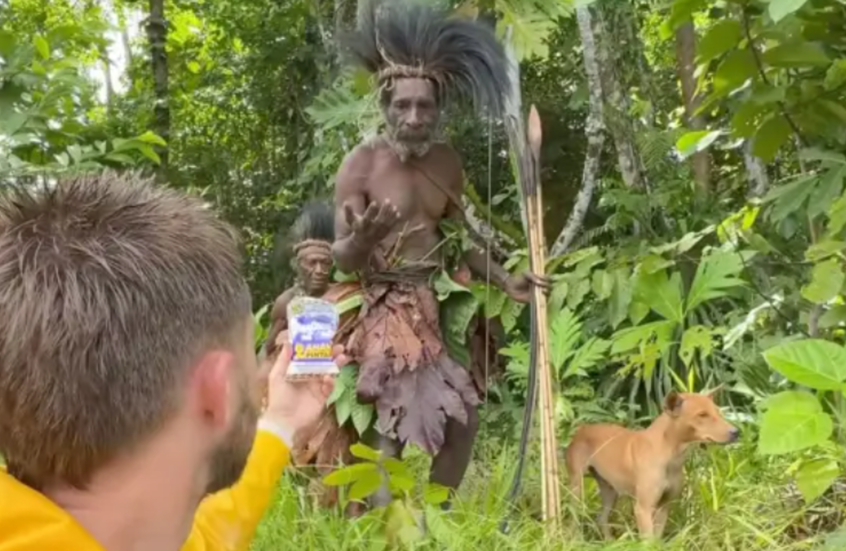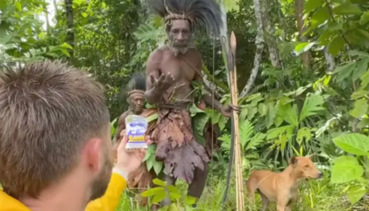 وعندما فشلت محاولاته في تهدئة الوضع، حاول المؤثر تقديم كيس من الملح كرمز للسلام. وقال “تاه”: “لديّ ملح”، وهو يفرغ الكيس في يديه ويقدمه لأحد زعماء القبيلة، الذي ظهر مرتديا غطاء من أوراق الشجر ويحمل قوسا وسهاما.