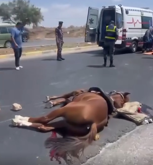 شبكة الشرق الأوسط نيوز : تعرض حصان لحادث دهس على شارع الستين في لواء الوسطية بمحافظة إربد أحد أهم الطرق الحيوية والدولية التي تشهد حركة سير نشطة.