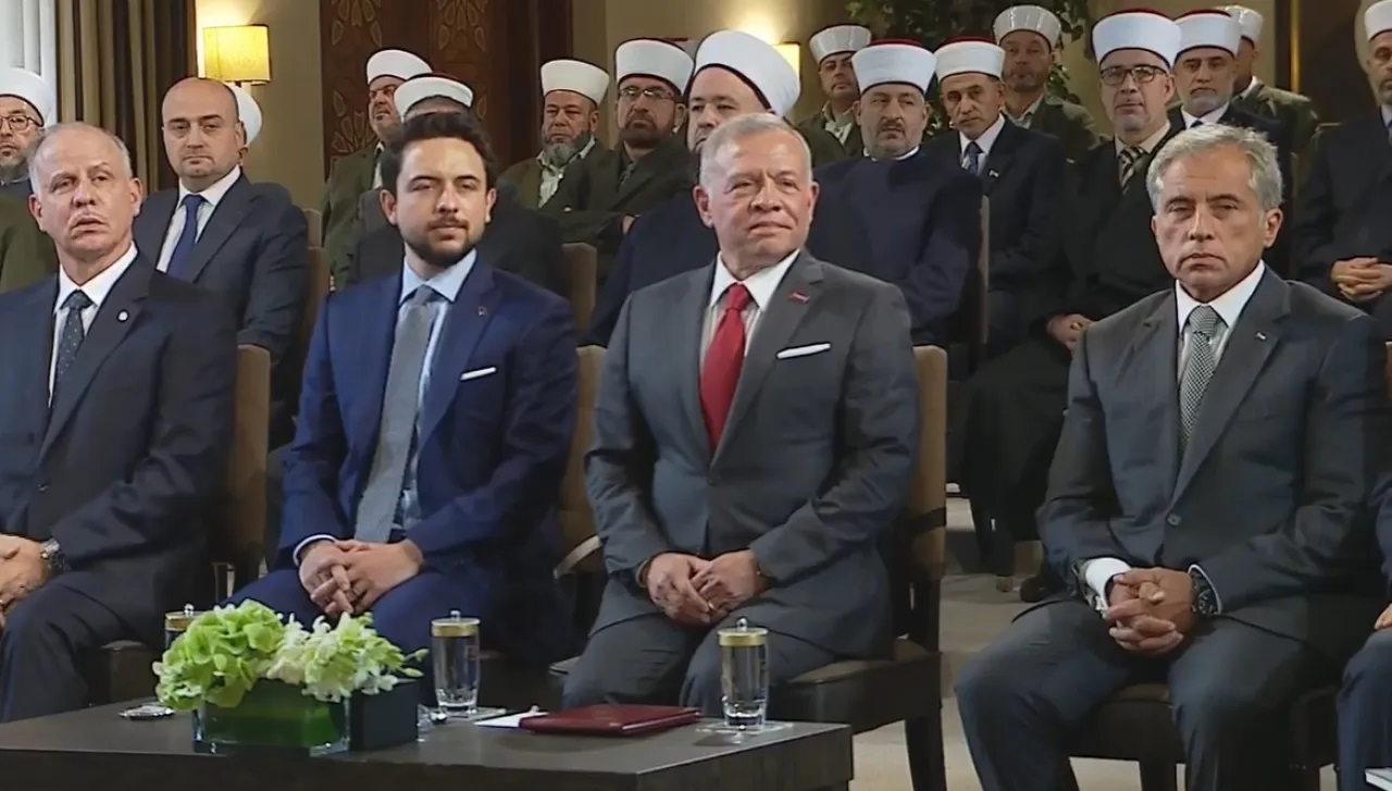 شبكة الشرق الأوسط نيوز : جلالة الملك عبدالله الثاني وسمو الأمير الحسين بن عبدﷲ الثاني، ولي العهد، الفعالية الدينية في قصر الحسينية بمناسبة ذكرى مرور 1500 عام على مولد الرسول الأكرم محمد صلى الله عليه وسلم.