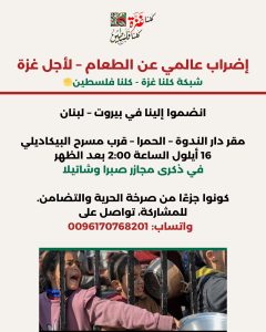 ويحمل الإضراب رسالة موحدة إلى العالم: “غزة ليست وحدها.. وفلسطين ليست قضية صامتة، بل صرخة حرية تتسع لتشمل كل ضمير حي”.