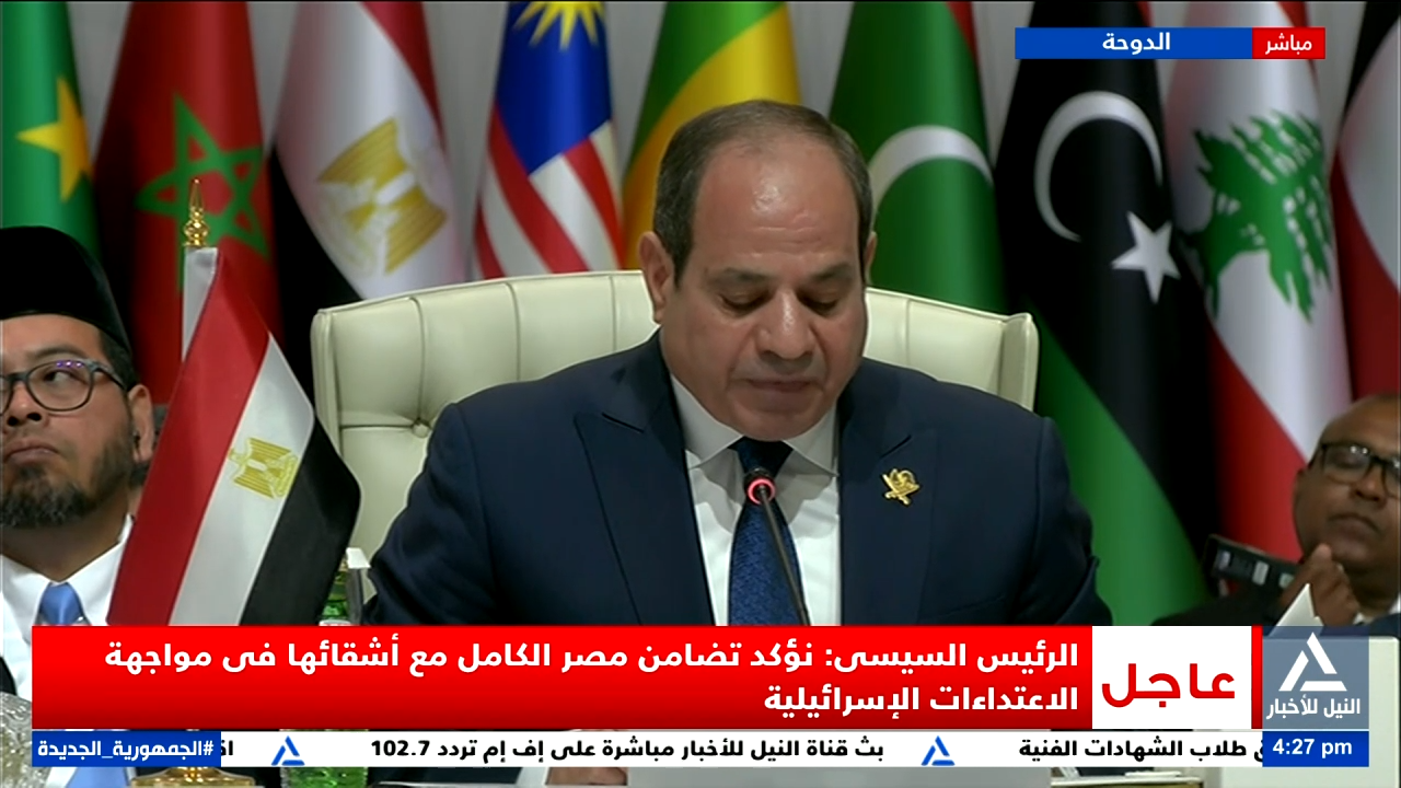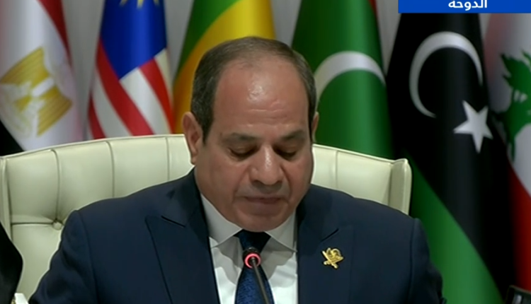 وأوضح السيسي خلال كلمته في القمة العربية في الدوحة بعد الهجوم الإسرائيلي على قطر: “على العالم كله إدراك أن سياسيات إسرائيل تقوض فرص السلام في المنطقة وتضرب عرض الحائط بالقيم الإنسانية واستمرار هذا السلوك لن يجلب سوى مزيدا من التوتر”.
