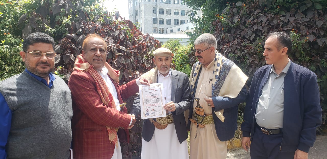 شبكة الشرق الأوسط نيوز : في إطار الزيارات الميدانية للاخ العميد /حميد عبد القادر عنتر مستشار رئاسة الوزراء رئيس الحملة الدولية لكسر حصار مطار صنعاء الدولي قام بزياره الى المحافظة وتم تكريم الاخ العميد امين الورافي الامين العام نائب المحافظ بشهاده تقدير من قيادة الحملة الدوليه لكسر الحصار ومن الفريق سلطان السامعي عضو المجلس السياسي الاعلى نظرا لجهود المذكور وكفائته في أداء عمله ويعتبر العميد الورافي من الداعمين للحمله الدوليه لكسر الحصار الذي يعمل ليل ونهار بدون كلل او ملل ويدوام في المحافظه ومكتبه مفتوح لاستقبال المواطنين ويحضر في كافة الفعاليات التي تناصر قضية اليمن وفلسطين نتمنى له التوفيق في مهامه