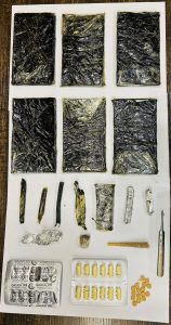 وفي محافظة العقبة وبعد جمع المعلومات حول تاجر للمخدرات والتاكد من قيامه بحيازة وتخزين كمية كبيرة من المواد المخدرة تمت مداهمته والقاء القبض عليه، وبالتحقيق معه جرى تحديد مكان إخفاء المواد المخدرة في منطقة صخرية وعرة وبتمشيط المنطقة جرى ضبط 36 كف حشيش قام باخفاءها هناك .