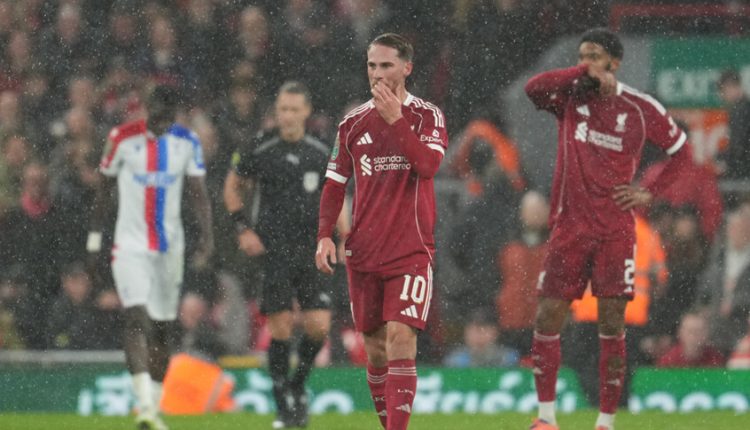 شبكة الشرق الأوسط نيوز : ودع نادي ليفربول منافسات كأس الرابطة الإنجليزية من الدور الرابع بعد هزيمة ثقيلة على أرضه امام كريستال بالاس بثلاثة أهداف نظيفة، في لقاء جرى مساء الأربعاء على ملعب “أنفيلد”.