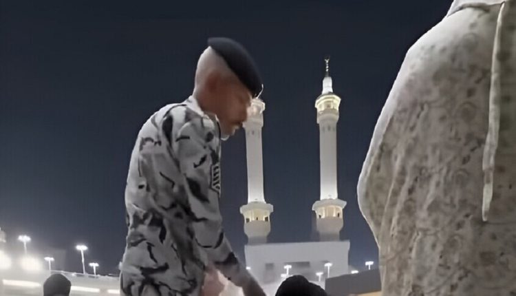 ويظهر الفيديو – الذي لم تتجاوز مدته دقيقة واحدة – لحظة تجاوز رجل الأمن لصلاحياته، حيث رفع يديه على المعتمر أثناء جلوسه مع زوجته داخل الحرم، في حين طالبه المعتمر قائلًا: “إيدك ما تتمد… أنا بكلمك بكل ذوق واحترام، المفروض تتعامل كدا انت كمان”.