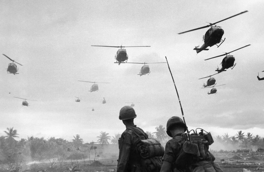 تحولت ساحة المعركة إلى جحيم مفتوح، حيث وجد الجنود أنفسهم محاصرين قبل اكتمال إنزالهم، وفقدوا إحدى فصائلهم في اللحظات الأولى. لم تتأخر النجدة. بطاريتان من مدافع الهاوتزر عيار 105 ملميتر، ضمتا 12 مدفعا، نُقلتا جوا بواسطة مروحيات “شينوك” العملاقة، وبدأتا في قصف مواقع الفيتناميين من دون توقف. في السماء، حلقت طائرتا “سكاي رايدر” وقاذفات مقاتلة، أسقطت قنابل زنة 250 و500 رطل إضافة إلى قنابل النابالم الحارقة، محولة الغابة إلى كتلة من النار والدخان.