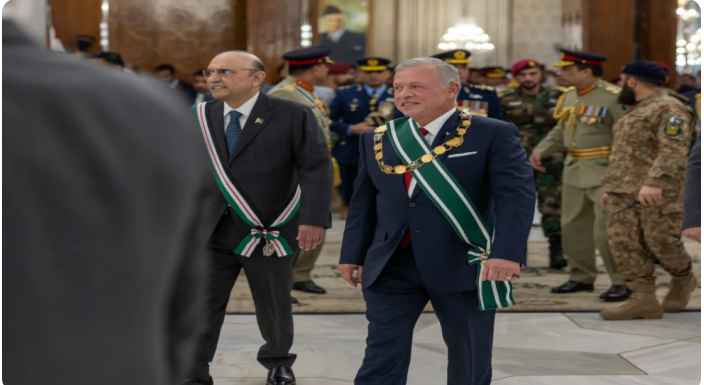 شبكة الشرق الأوسط نيوز : منح جلالة الملك عبدﷲ الثاني، الرئيس الباكستاني وسام النهضة المرصع، توثيقا لروابط الصداقة وتعميقا للعلاقات بين البلدين والشعبين.