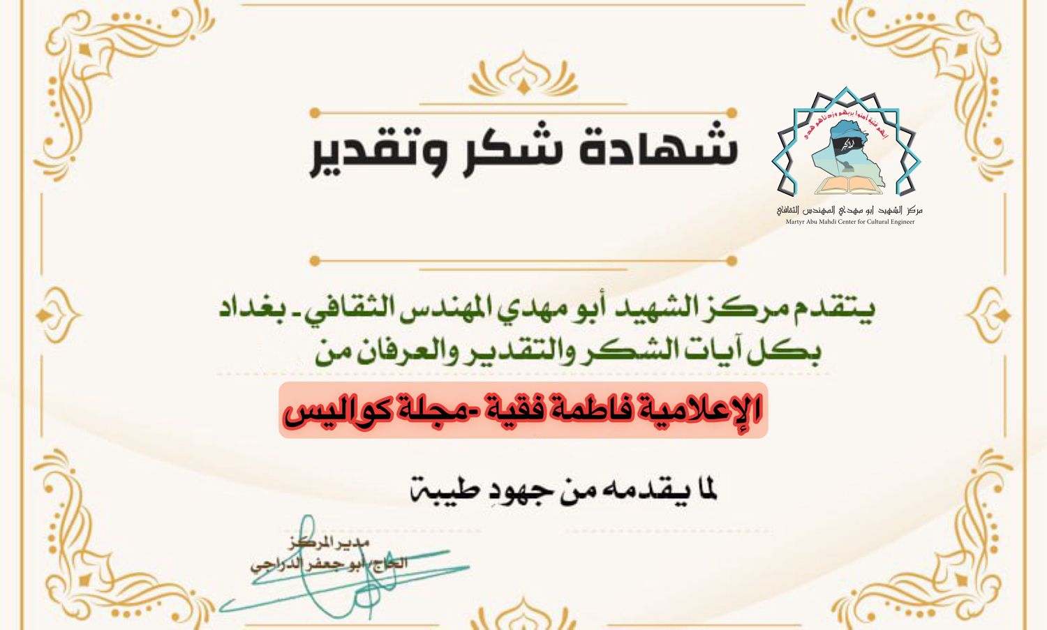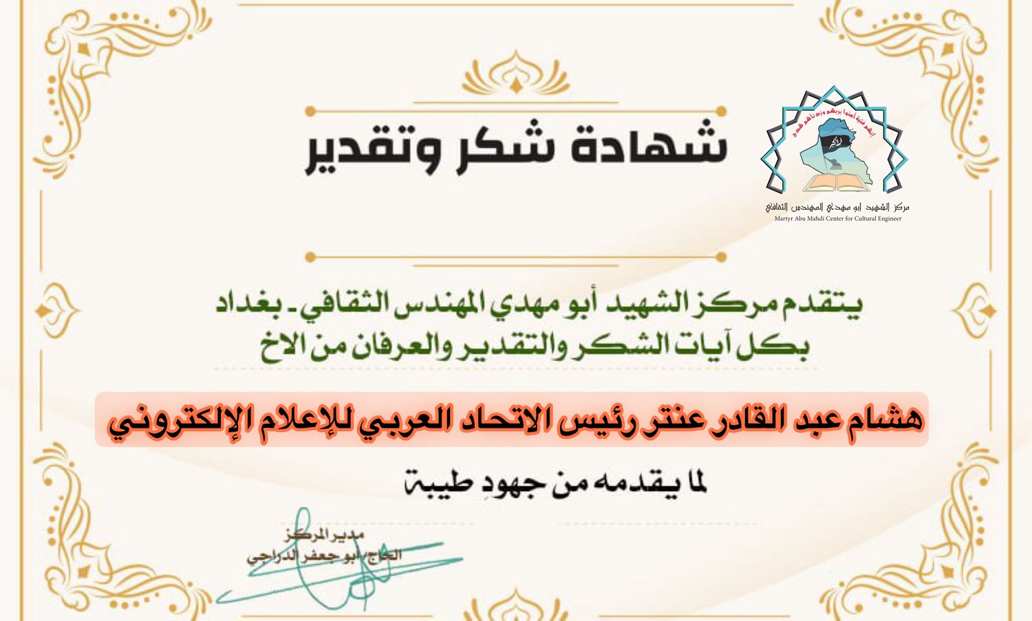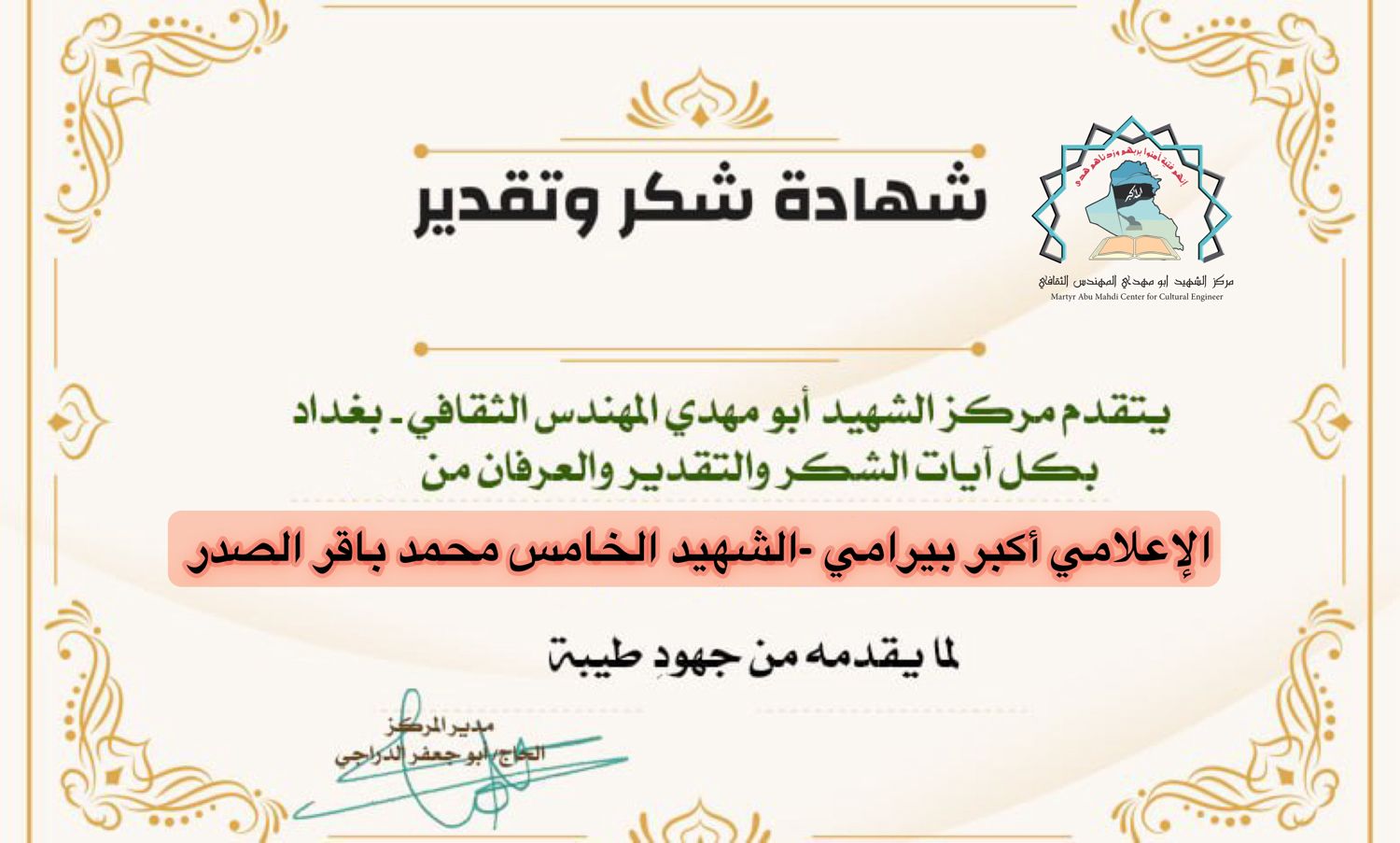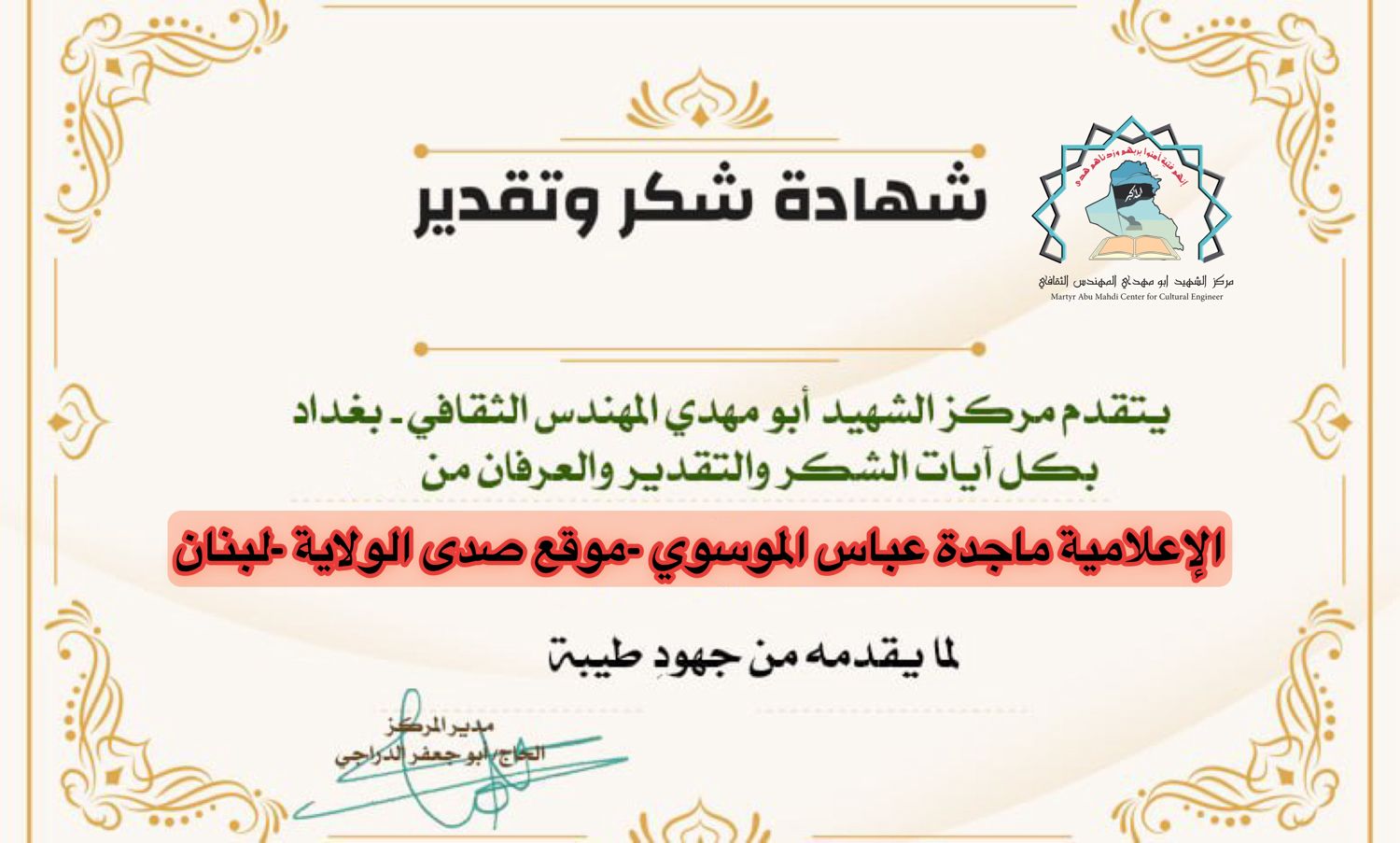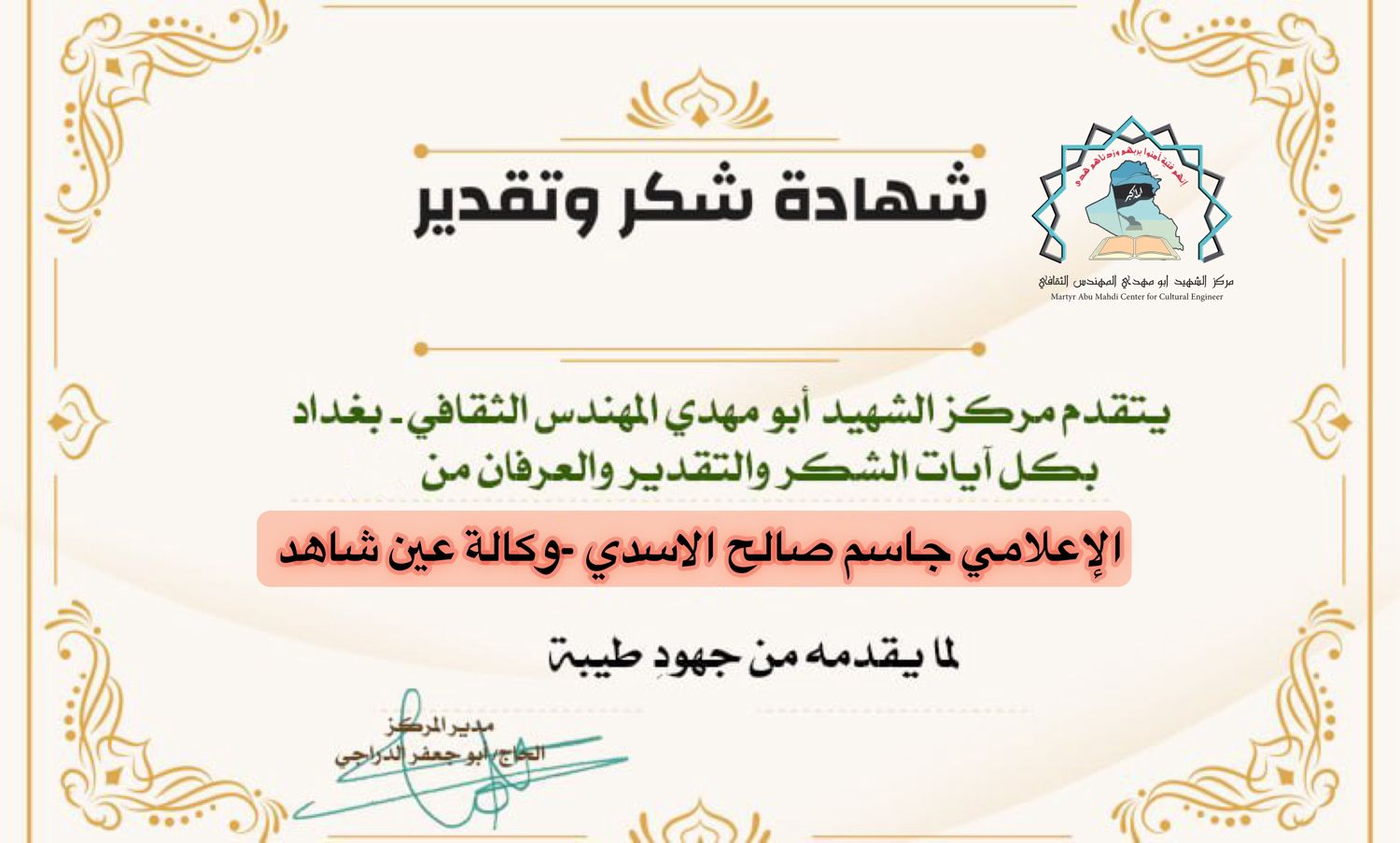 مركز الشهيد ابو مهدي المهندس يكرم كوكبة من الإعلاميين