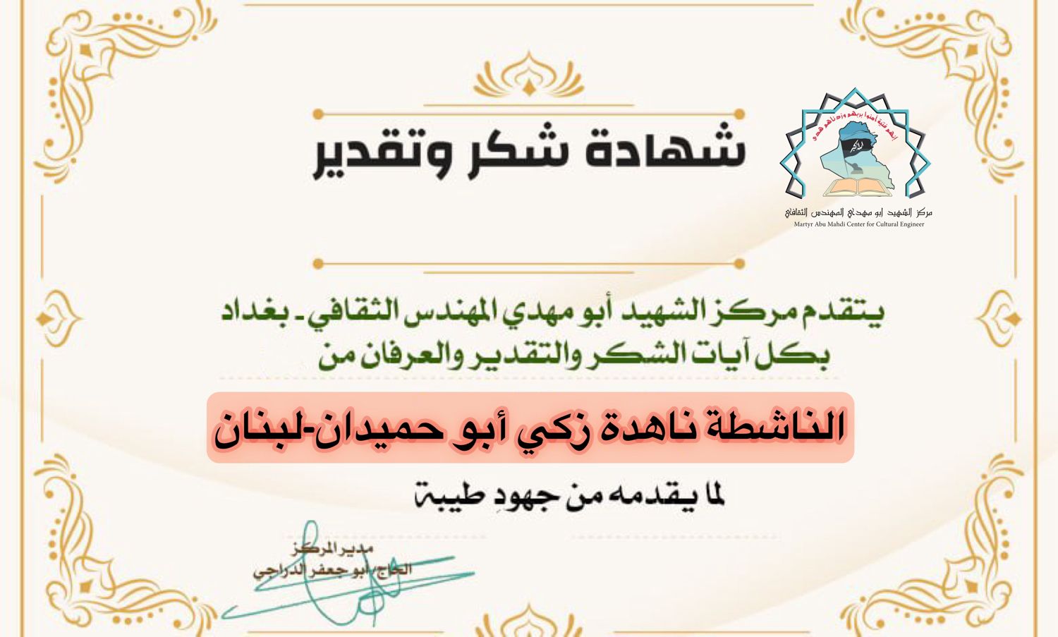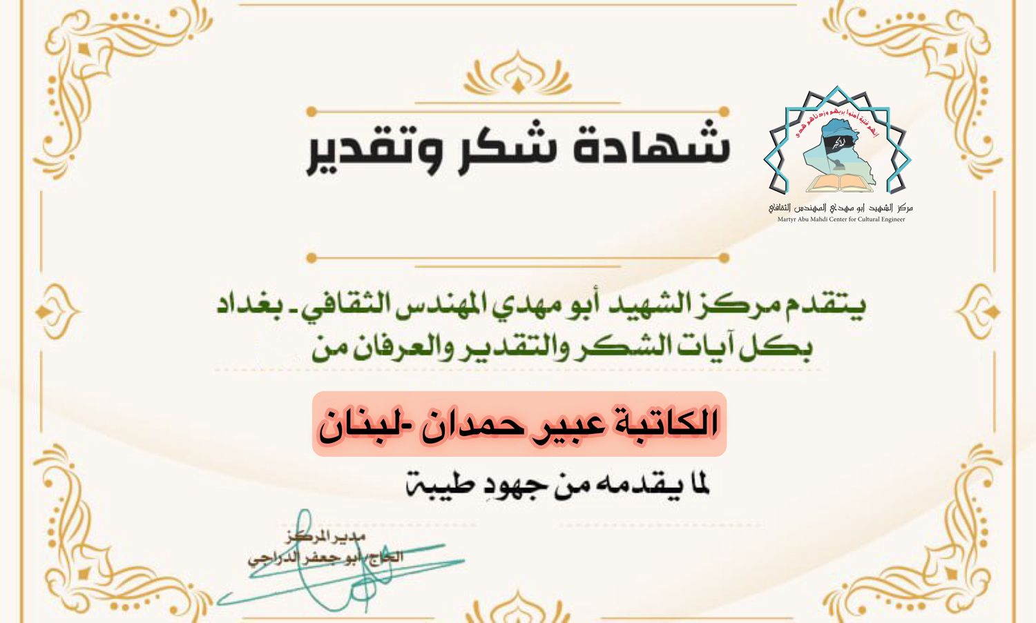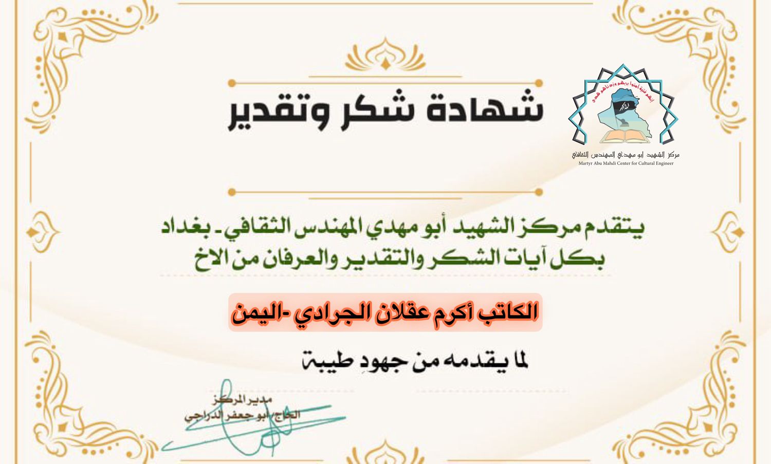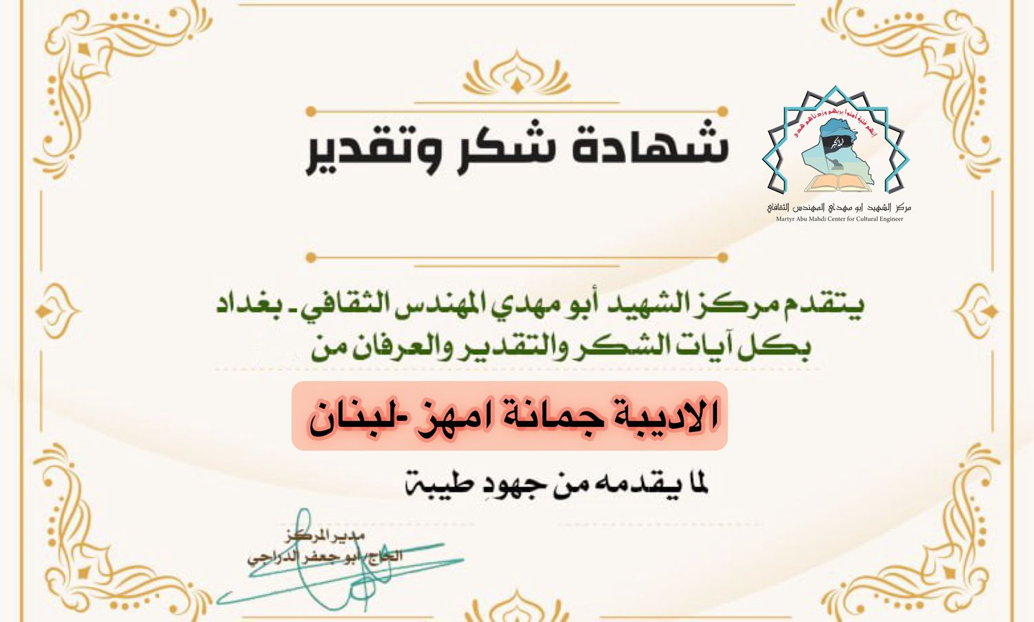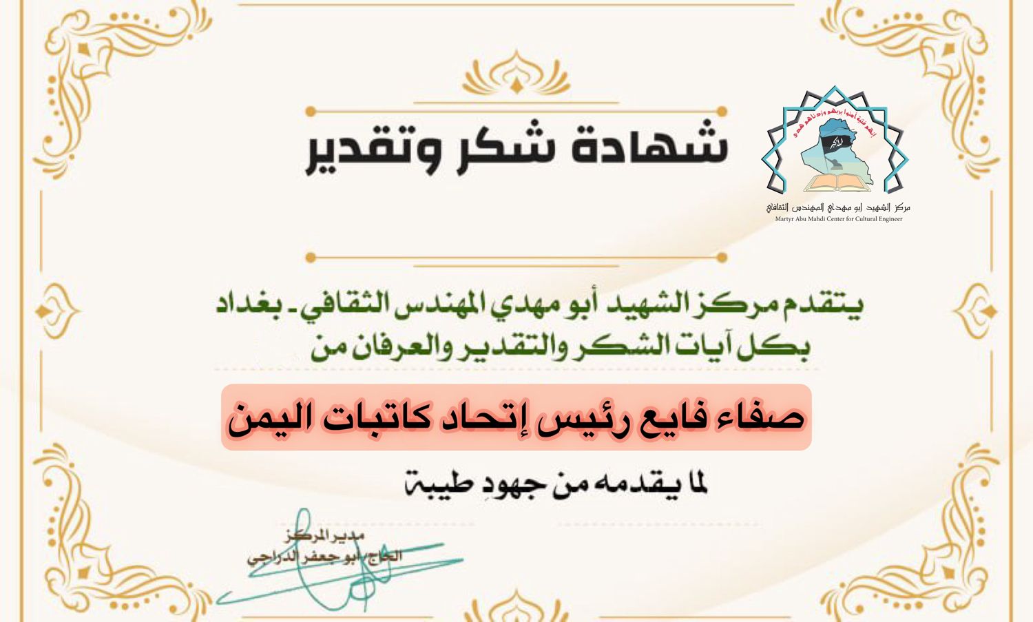 مركز الشهيد ابو مهدي المهندس يكرم كوكبة من الإعلاميين