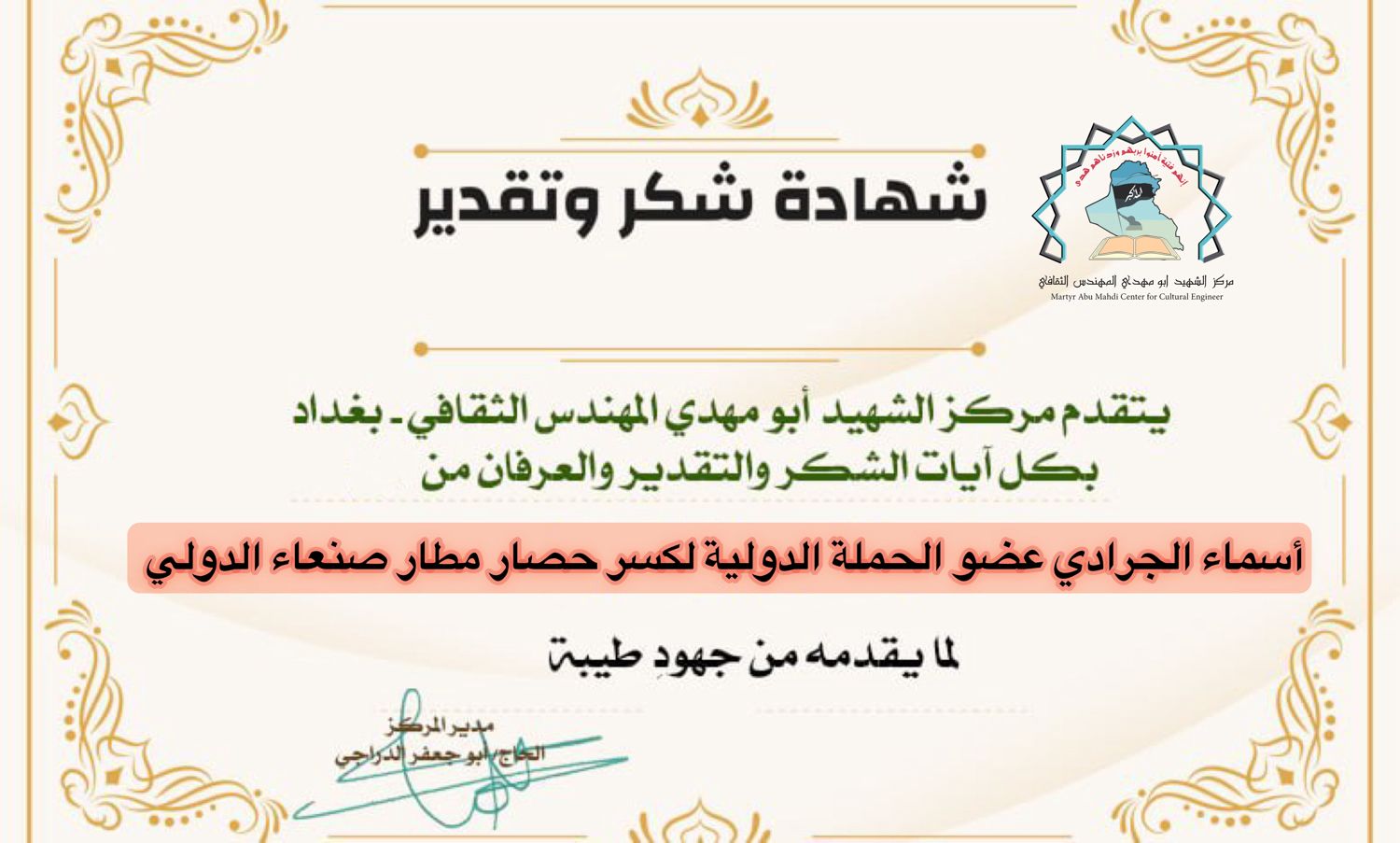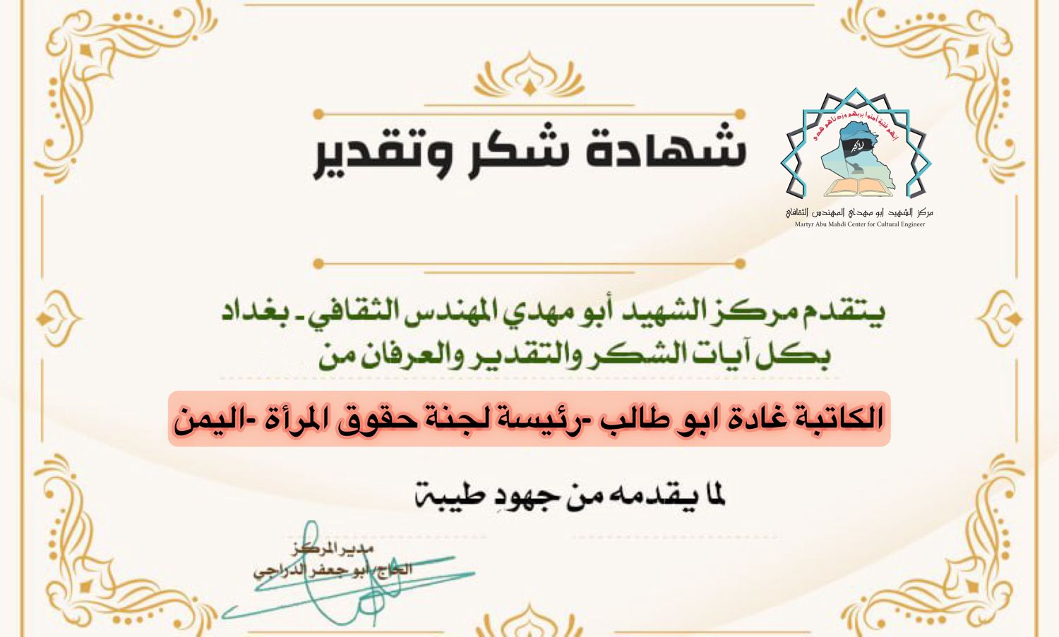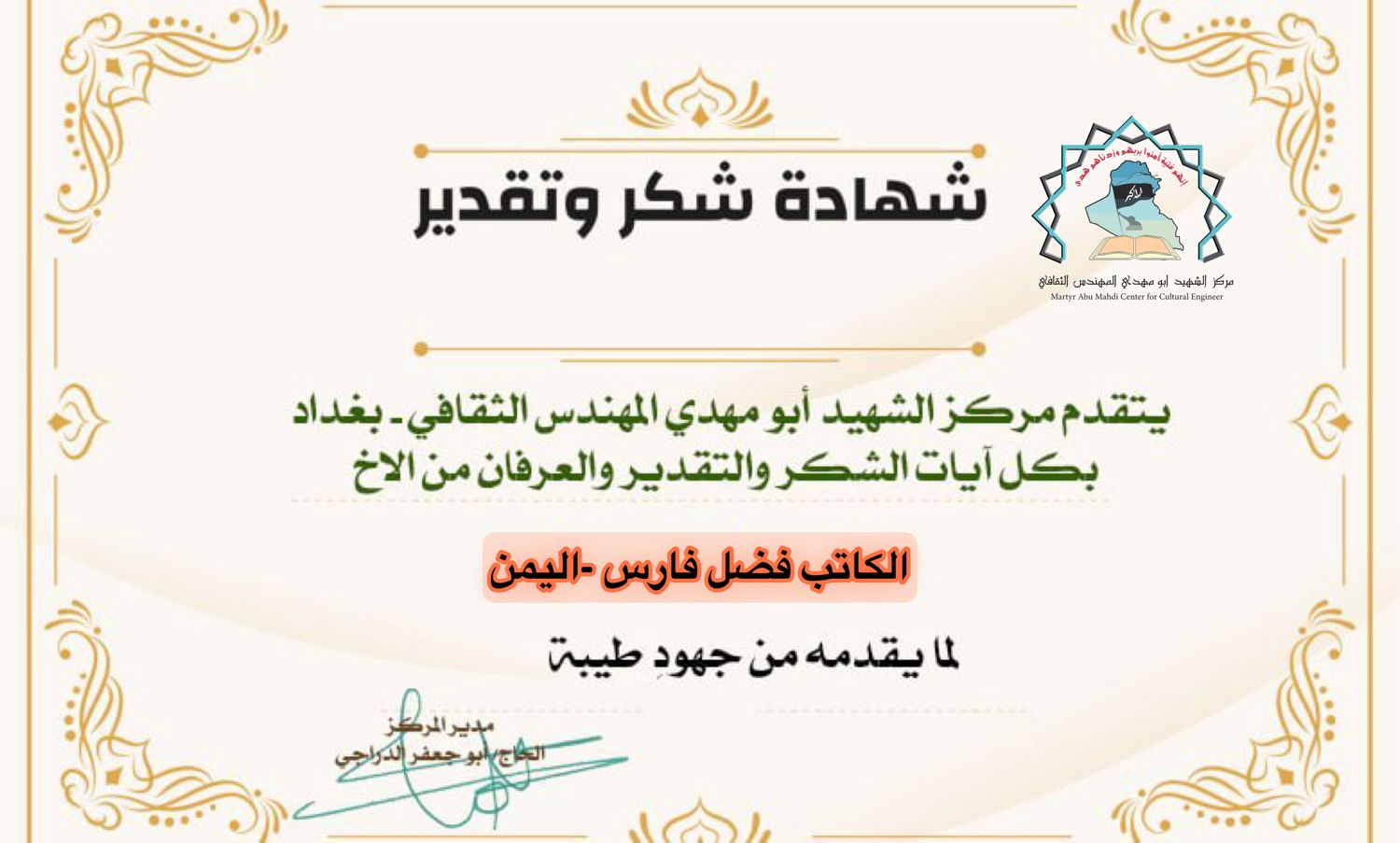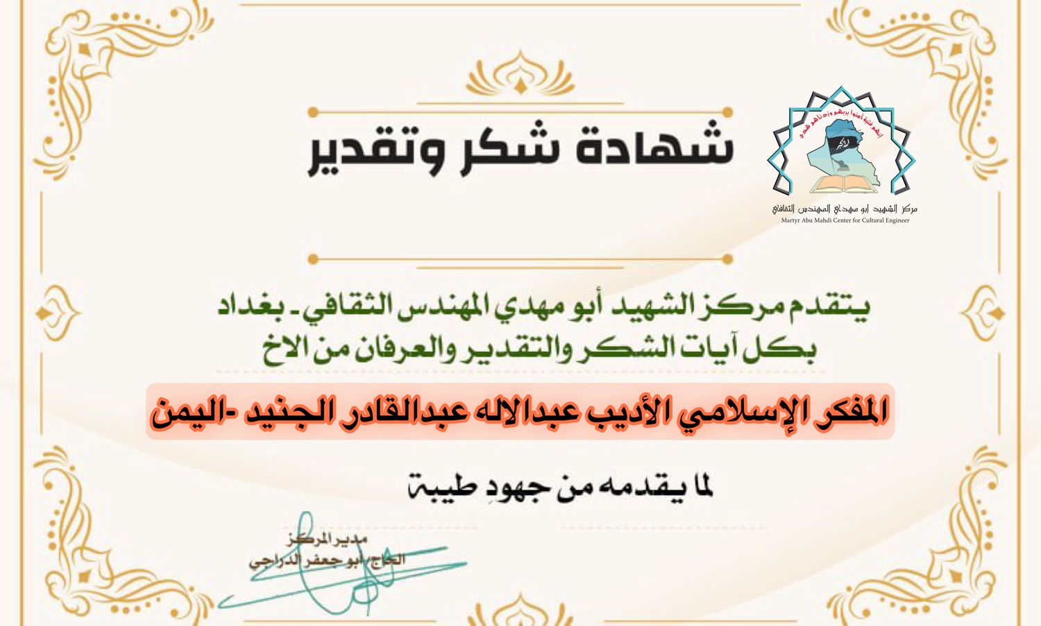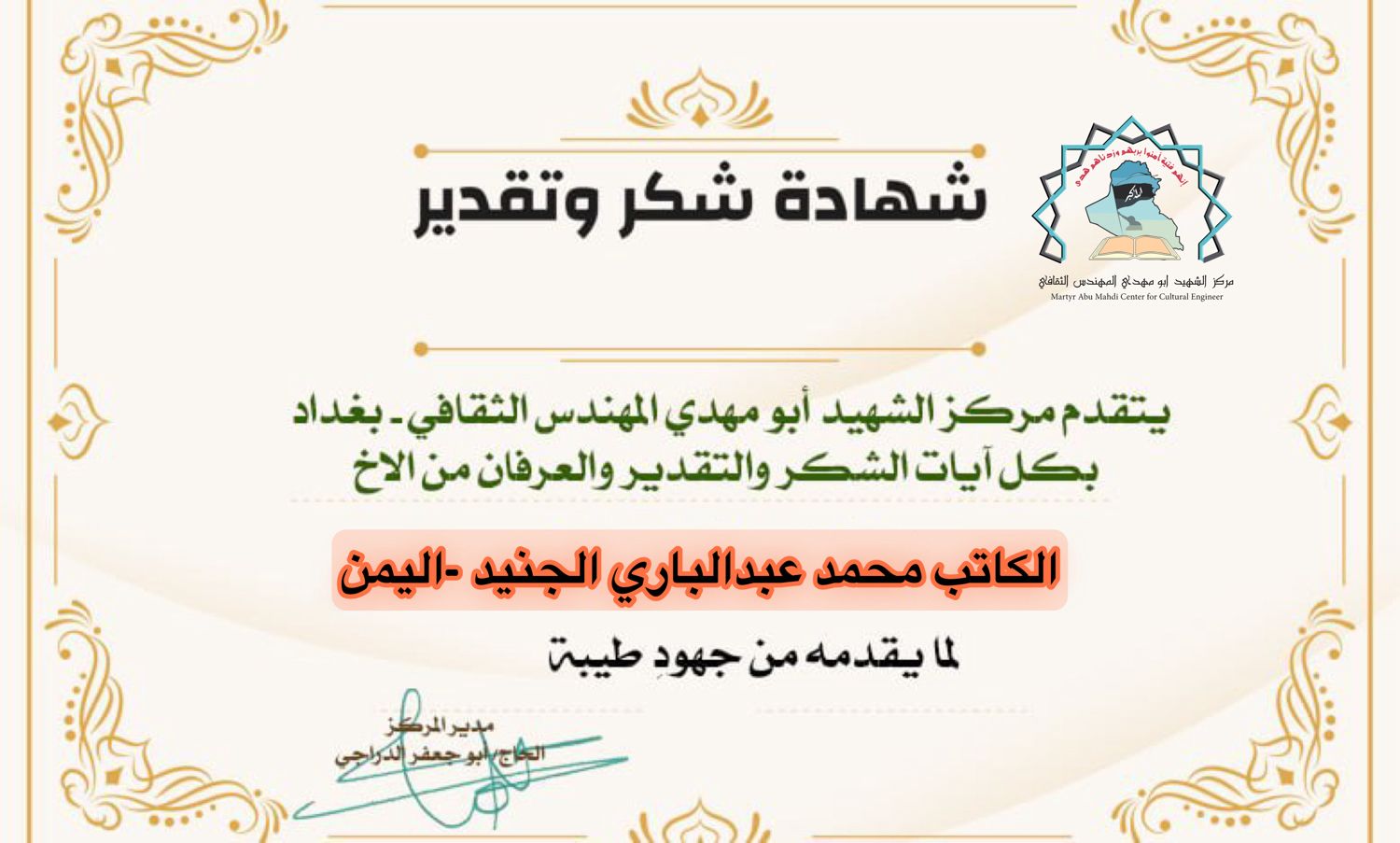 مركز الشهيد ابو مهدي المهندس يكرم كوكبة من الإعلاميين