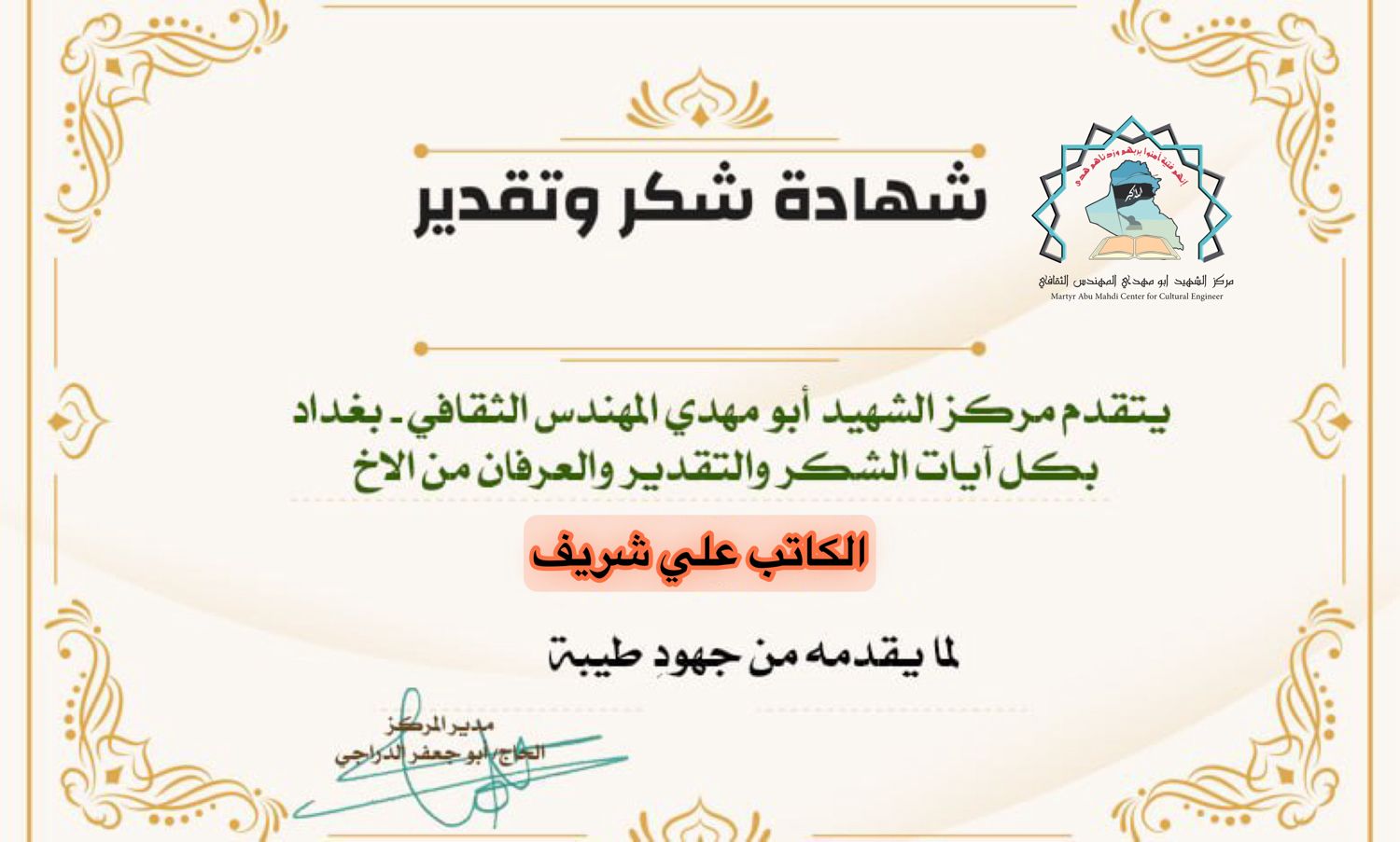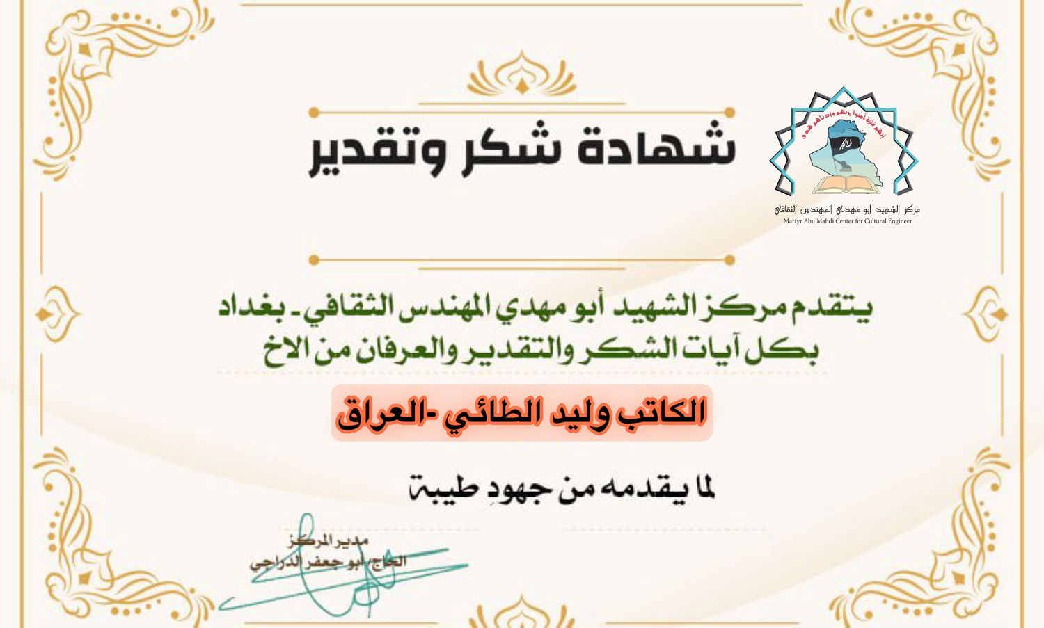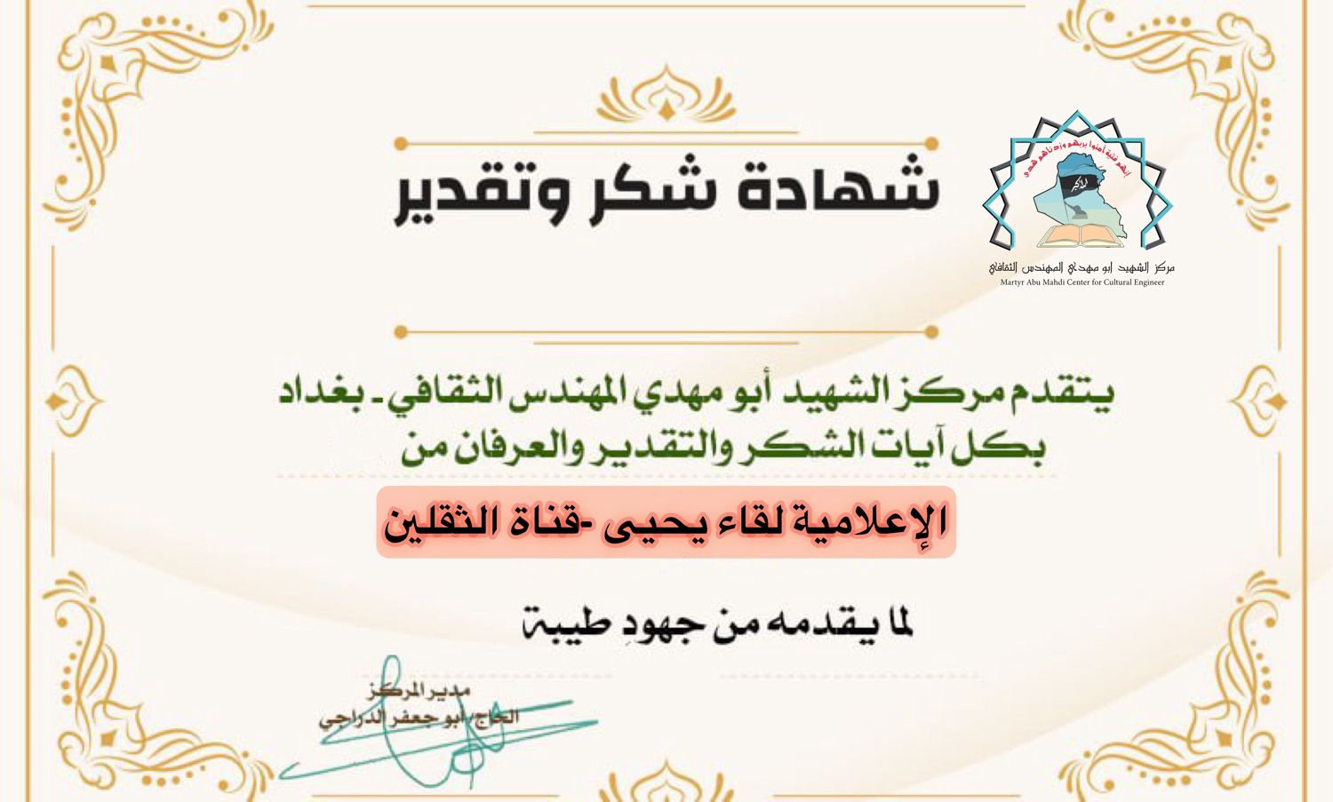 شبكة الشرق الأوسط نيوز : الاخ الحاجي أبو جعفر الدراجي مدير مركز الشهيد ابو مهدي المهندس